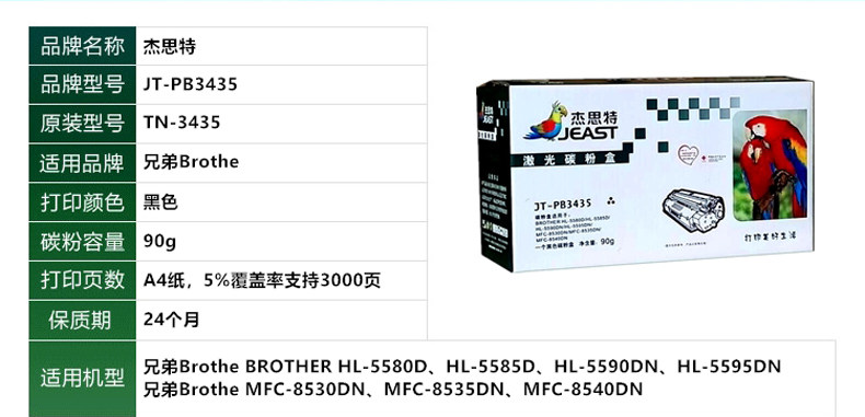杰思特JT-PB3435粉盒 DB-3450硒鼓适用兄弟TN3435 MFC8530DN 8535 8540 5590DN 自营